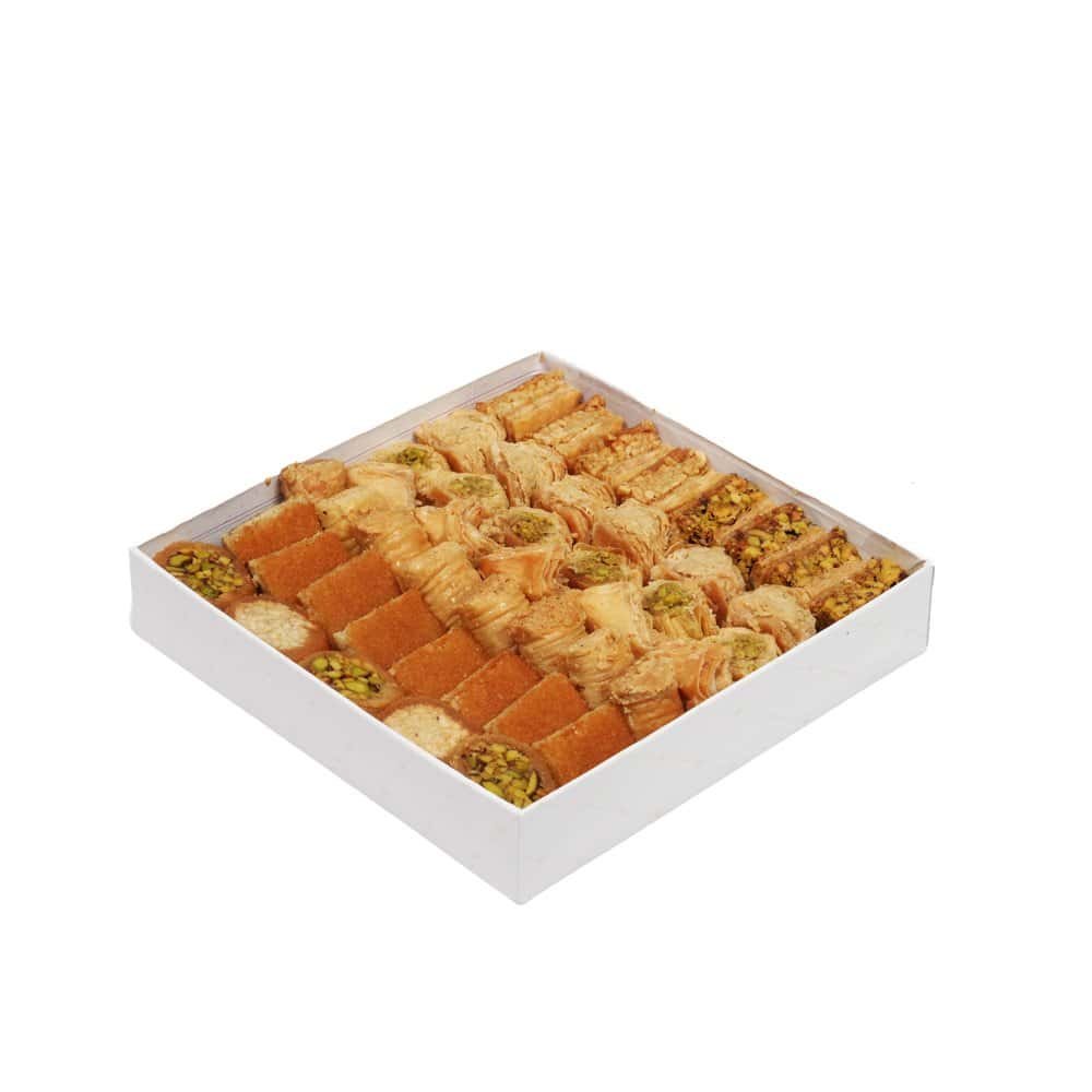 Un clásico de la repostería oriental con siglos de historia, originario del Imperio Otomano y muy apreciado en todo el Mediterráneo y Oriente Medio. Elaborado artesanalmente con finas capas de masa filo, frutos secos seleccionados y un delicado almíbar aromatizado con agua de azahar o miel.Disfruta del delicioso sabor de nuestros Baklavas, elaborados a mano en Líbano con precisión y cuidado, siguiendo recetas tradicionales transmitidas de generación en generación. Esta lujosa caja surtida de dulces orientales combina pistachos, nueces y anacardos aromáticos, ofreciendo una textura crujiente y un sabor inigualable en cada bocado.Siempre recién preparados y auténticamente libaneses, nuestros baklavas son un símbolo de tradición, elegancia y exquisitez
